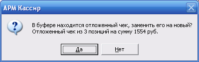 Отложенный чекОперация «Отложенный чек» применяется в следующих ситуациях, если кассир набрал на кассовом месте покупки, а покупатель по какой либо причине не может оплатить (оставил сумку с кошельком в торговом зале) и что бы не останавливать всю очередь кассир может отложить набранный чек, сохранив его в буфере. Для этого нужно нажать Ctrl+C набранные позиции сохраняться в памяти, кассир сможет набирать покупки для следующего клиента.В строке состояние (нижняя часть экрана с право) появиться мерцающий значок отложенного чека. ![]() Для восстановления отложенного чека нужно снова нажать Ctrl+C. При попытке отложить чек при уже отложенном другом чеке, появиться сообщение предлагающее заменить ранее отложенный. ![]() |