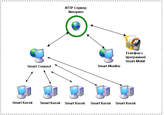 Smart ConnectПередача данных в Интернет для дистанционного обмена данными с рабочими местами кассиров, работает в комплексе с Smart Monitor.Система позволяет подключать через Интернет любое количество автоматизированных рабочих мест. Схема обмена данными через Интернет ![]() В Demo версии, передача данных о сумме выручки, ограничена 9,99 руб. Для просмотра и обмена данными используется Smart Monitor или Smart Mobil |