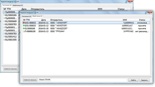 Изменение в интерфейсе получения транспортных накладных системы ЕГАИС, теперь можно просматривать обработанные ТТН: